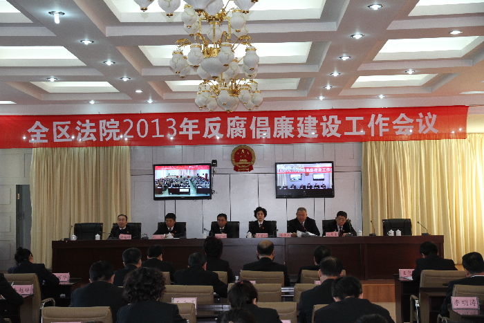 为贯彻传达全国、全省法院反腐倡廉建设工作会议精神,安排部署2013年全区法院反腐倡廉建设工作,近日,大兴安岭地区中级人民法院召开了2013年全区法院反腐倡廉建设工作视频会议。