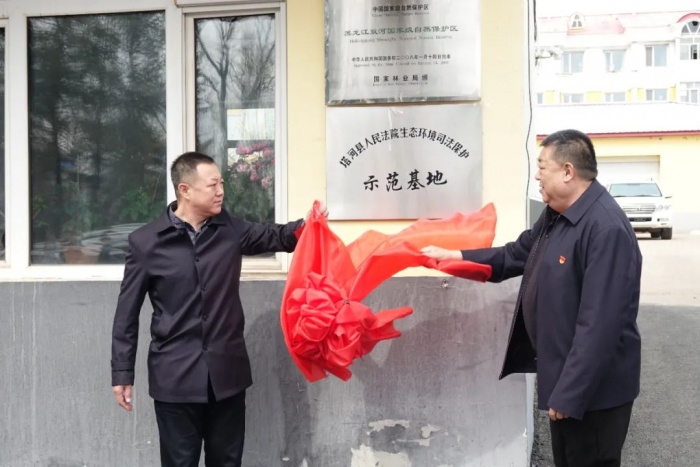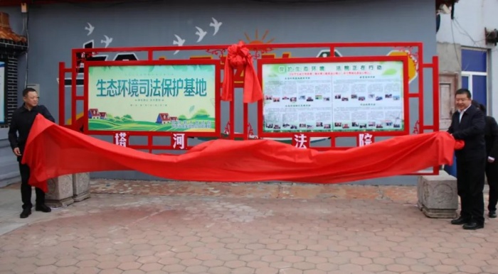 塔河县人民法院为切实将司法保护生态环境工作做深、做实,用好司法保护生态环境“新名片”,4月28日,塔河县人民法院与双河国家级自然保护区管理局联合建立“生态环境司法保护示范基地”,与固奇谷国家湿地公园管理局联合建立“生态环境司法保护基地”举行揭牌仪式。塔河县人民法院“环境资源审判庭”、“生态价值转化联络室”同日挂牌成立。