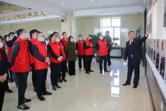 在图书馆,大家了解了地区法院文化建设成果和全民阅读活动开展情况。法院干警向大家介绍了中院优化营商环境工作情况和在保护中小投资者方面取得的成果,汇报人民法院在依法平等保护各类市场主体工作中提供的司法服务和司法保障。