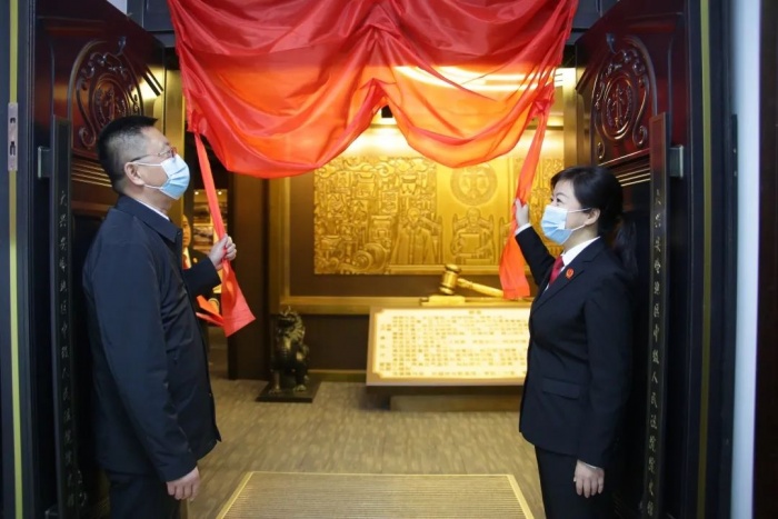 何培信和于世伟共同为院史馆揭牌,于世伟代表中院党组致辞。
