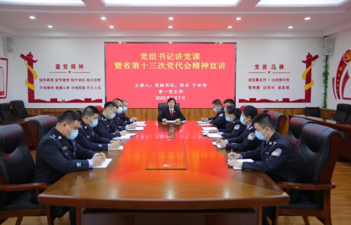 中院班子成员在所在支部围绕学习贯彻落实省党代会精神为全体党员讲专题党课,各支部干警认真学习,紧密联系工作实际,在奋进新征程、再创新辉煌中解放思想、提升能力、转变作风。