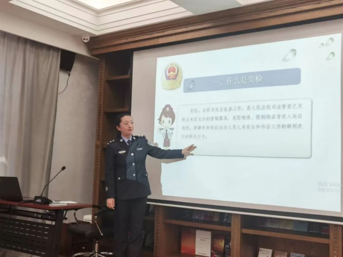按照学习计划,5月27日,第二十八期活动如期开讲,法警支队四级警长许冰以“增强警务安全意识,筑牢司法安全防线”为主题,和大家交流了法院安保工作为什么如此重要。