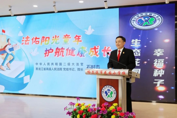 2022年5月30日上午,二级大法官、省法院党组书记、院长石时态走进哈尔滨市花园小学校,为在场学生和通过视频听讲的全市中小学生讲了一堂精彩法治课。学生们听得津津有味,心中已然种上了法治信仰的种子。