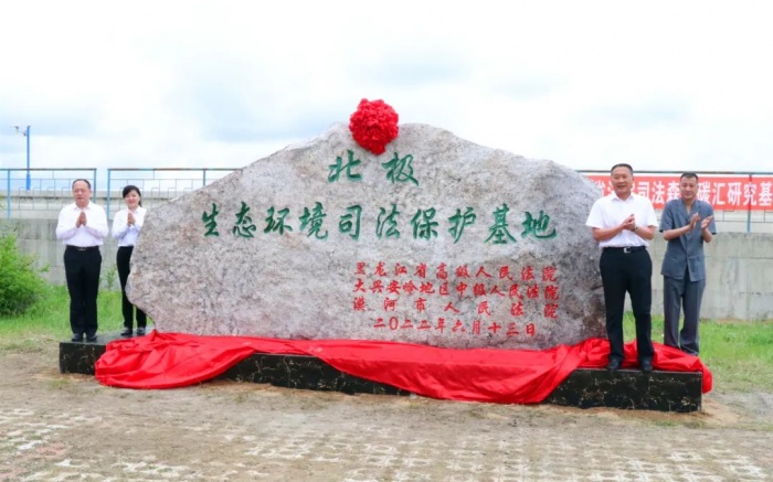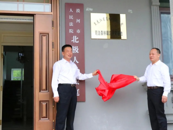 6月13日,由黑龙江省高级人民法院、大兴安岭地区中级人民法院、漠河市人民法院共同设立的北极生态环境司法保护基地和省法院司法森林碳汇研究基地在漠河市人民法院北极人民法庭正式揭牌成立。