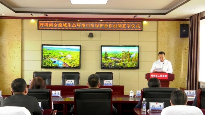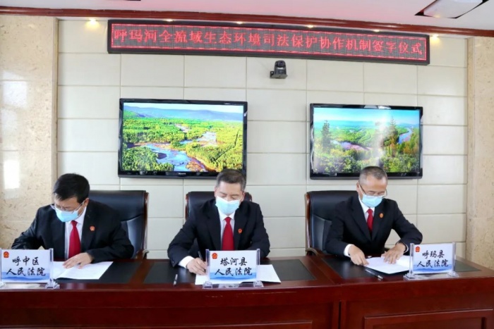 6月13日,呼中区人民法院、塔河县人民法院、呼玛县人民法院在呼中区举行“呼玛河全流域生态环境司法保护协作机制”签约仪式。