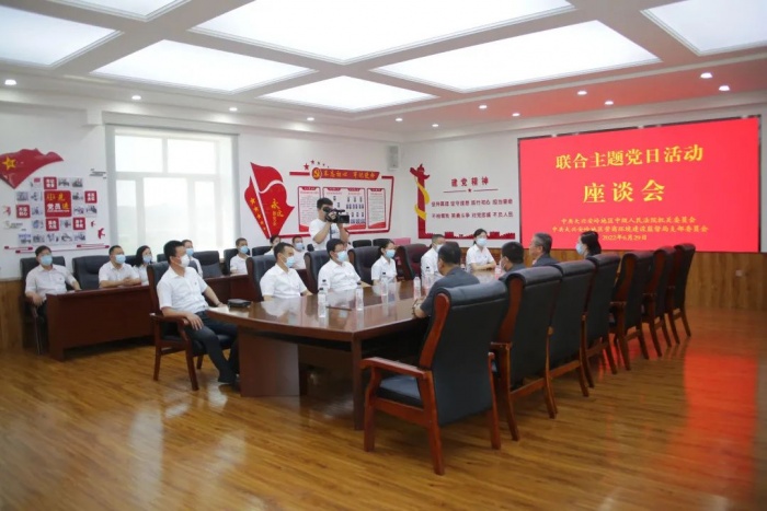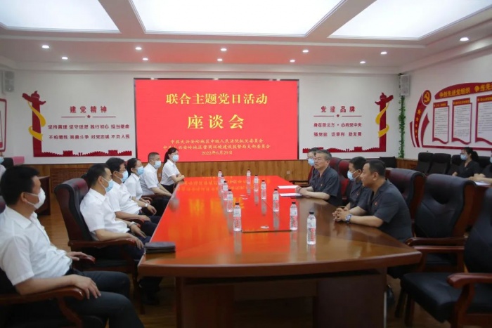 在中院党员活动室,中院党员代表和营商局党员共同重温入党誓词,并召开座谈会对基层党建情况,畅谈认识、分享感悟、交流心得、提出建议。