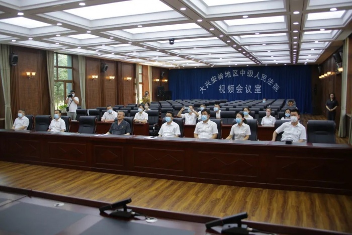在中院视频会议室,大家共同学唱歌曲《身在最北方·心向党中央》,观看学习了先进城市优化法治化营商环境工作专题片。