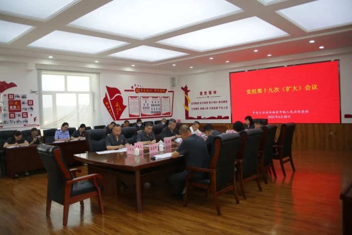 6月30日,大兴安岭地区中级人民法院召开党组会议,专题传达地委书记徐向国在庆祝中国共产党成立101周年暨“身在最北方•心向党中央”党建品牌创建工作推进会议上的讲话。中院党组书记、院长于世伟主持会议并就落实讲话精神作出具体要求,中院党组成员、院领导、各部门负责人参加会议。