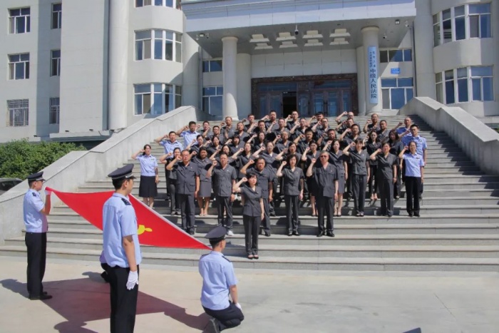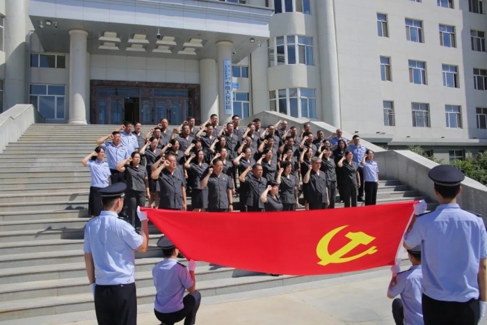 为庆祝中国共产党成立101周年,喜迎党的二十大胜利召开,7月1日,大兴安岭地区中级人民法院全体党员开展“庆‘七一’党员宣誓”活动。