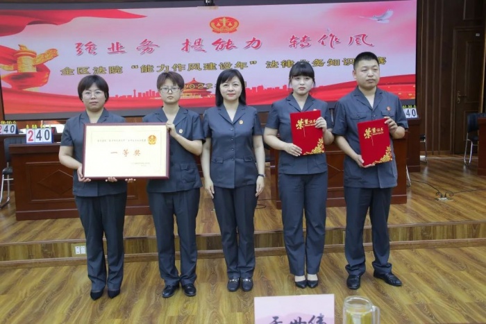 比赛结束后,参加活动的中院领导分别为获奖选手颁发证书和奖牌。