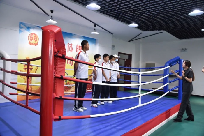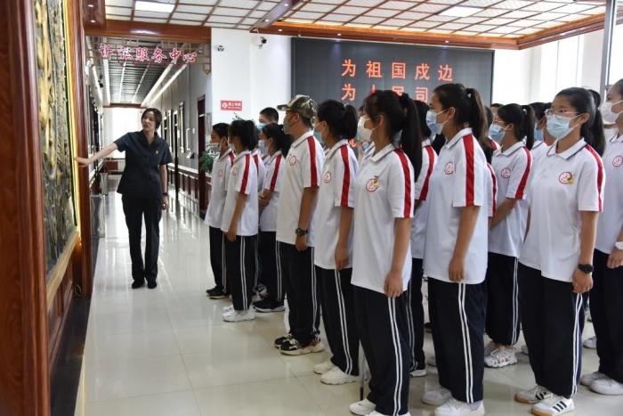 在讲解员的带领下,学生们先后参观了法治文化墙、诉讼服务中心、图书阅览室、体能训练室等场所。每到一处,学生们都充满了好奇,争相发问。