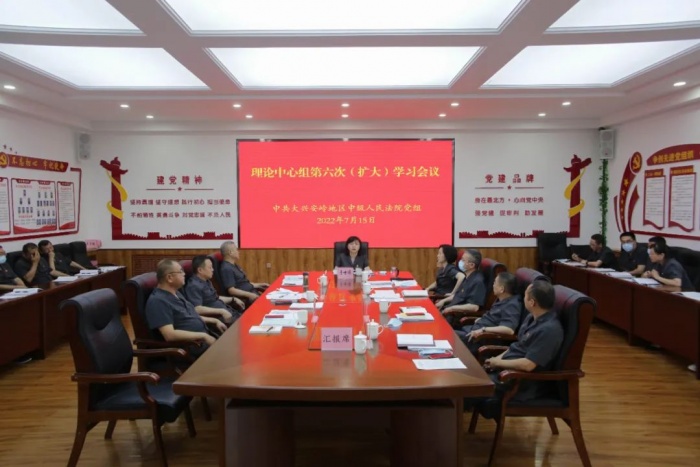 近日,大兴安岭地区中级人民法院召开第六次理论中心组(扩大)学习会议。会议由党组书记、院长于世伟主持,中心组全体成员参加。