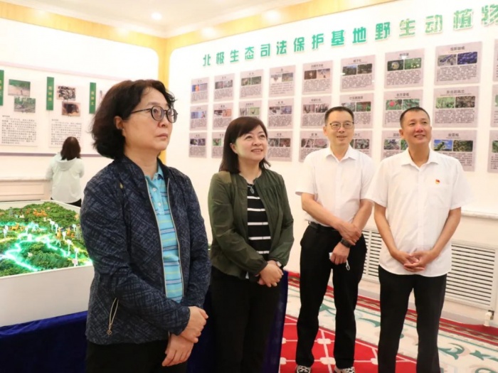 调研组一行还深入呼中白山生态环境司法保护基地、漠河市人民法院北极生态环境资源保护基地、省法院司法森林碳汇研究基地等处实地调研。