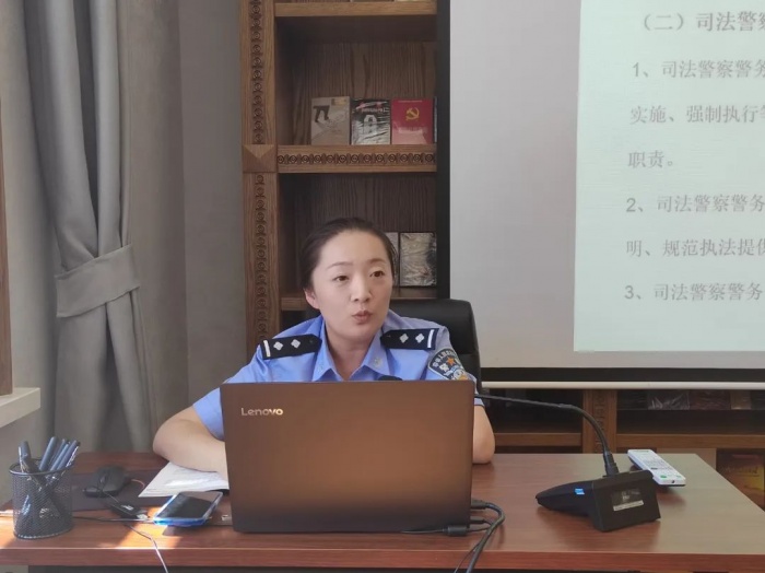 按照学习计划,8月2日,第四十五期活动如期开讲,中院司法警察支队四级警长许冰以司法警察警务保 障制度为题,与大家进行交流学习。