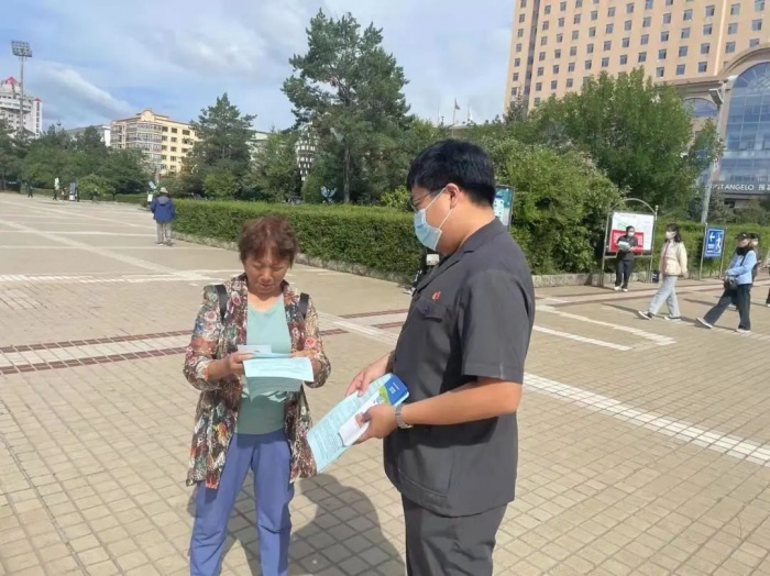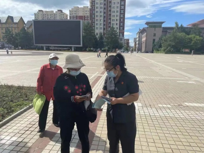 为切实提高广大群众识诈防诈“免疫力”,持续在全区营造浓厚的反诈氛围,近日,大兴安岭地区中级人民法院刑二庭全体干警来到加格达奇区新世纪广场,开展防范电信网络诈骗宣传活动。
