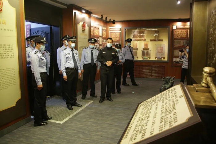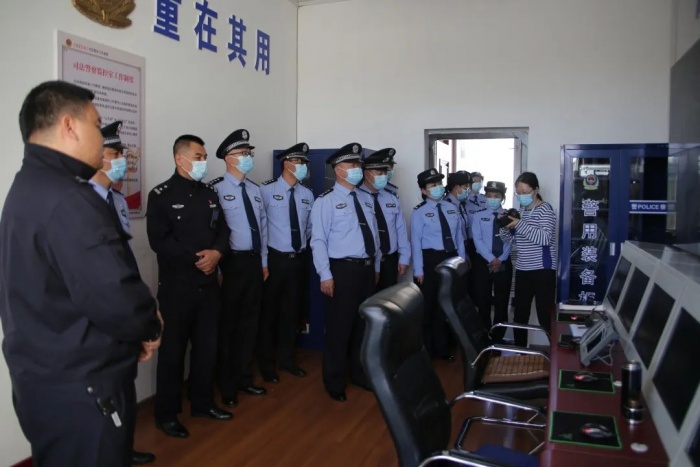 检察院一行在中院法警支队二级警长辛飞同志引领下,先后参观了警务监控中心、直属大队办公室、警用装备室、警队文化走廊、安检大厅、图书馆、科技法庭、院史馆等场所。