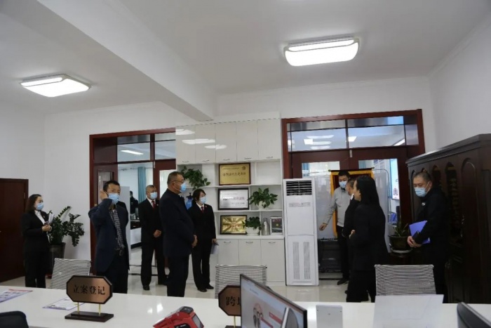 检查组一行听取了松岭区法院关于立案诉讼服务工作开展情况的汇报,对松岭法院近期的工作成效给予了肯定。