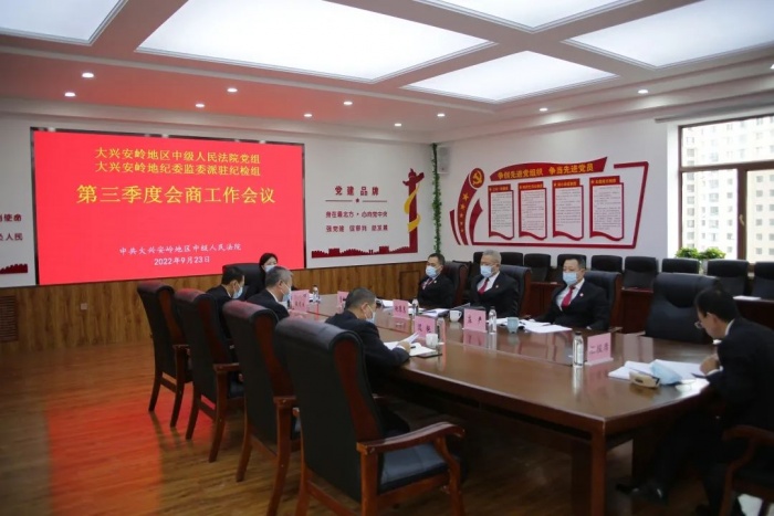 近日,大兴安岭地区中级人民法院党组与大兴安岭地区纪委监委派驻纪检组第三季度会商工作会议召开。会议讨论并通过了《大兴安岭地区中级人民法院关于规范案件判后释法答疑工作的实施细则(试行)》。中院党组书记、院长于世伟主持会议,中院院领导,地纪委监委派驻纪检监察组组长孟宪臣参加会议。