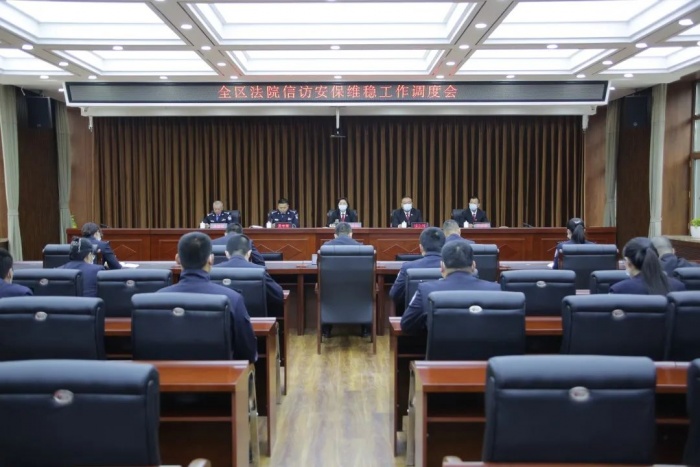 全区法院要深刻领悟省委、地委和省法院关于安全稳定和疫情防控工作的部署要求,坚持总体国家安全观,专题研究谋划部署,增强大局意识,强化底线思维,做到谋划在先、部署在先、防范在先。紧盯重点环节,从严从实从细完善各项工作措施,严防发生安全责任事故,严防发生法院内部疫情传播,确保平稳有序进行各项工作,确保我区社会大局持续稳定,努力为二十大胜利召开营造和谐稳定的社会环境。
