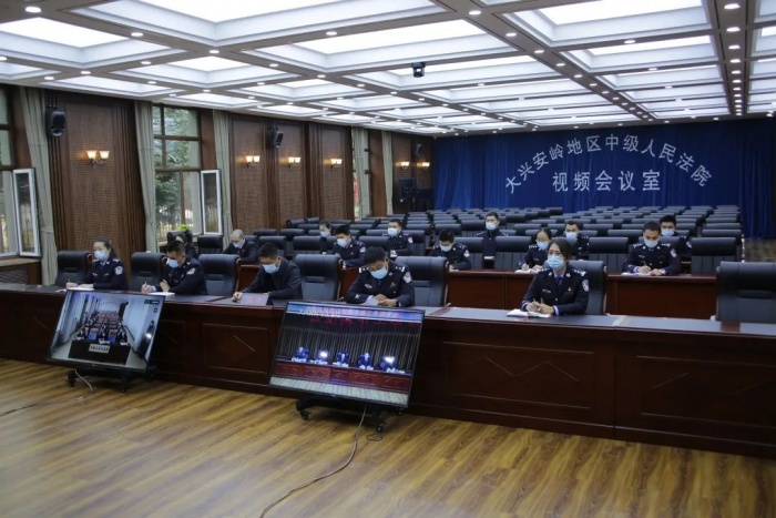 各基层人民法院全体干警在分会场视频参加会议,并视频汇报各院信访警务安全工作情况。