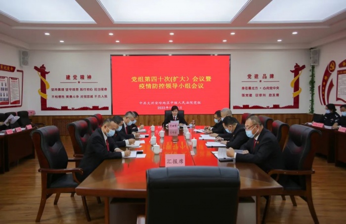 10月8日,大兴安岭地区中级人民法院党组召开第四十次党组(扩大)会议,对院机关常态化疫情防控工作进行再安排再部署。中院党组书记、院长于世伟主持会议。
