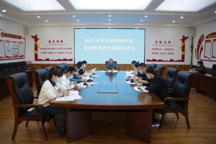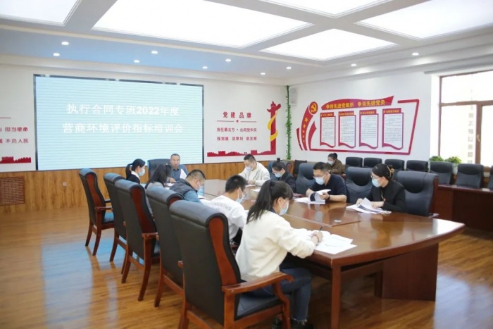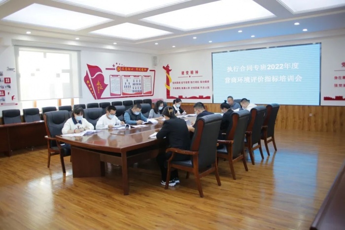 为认真做好2022年度营商环境评价指标填报工作,10月11日下午,执行合同专班召开2022年度营商环境评价指标培训会,地区中院审判委员会专职委员李晓天主持会议,参评相关责任单位,中院相关部门人员参加会议。