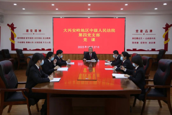 10月27日,大兴安岭地区中级人民法院第四党支部开展学习党的二十大精神专题党课活动。
