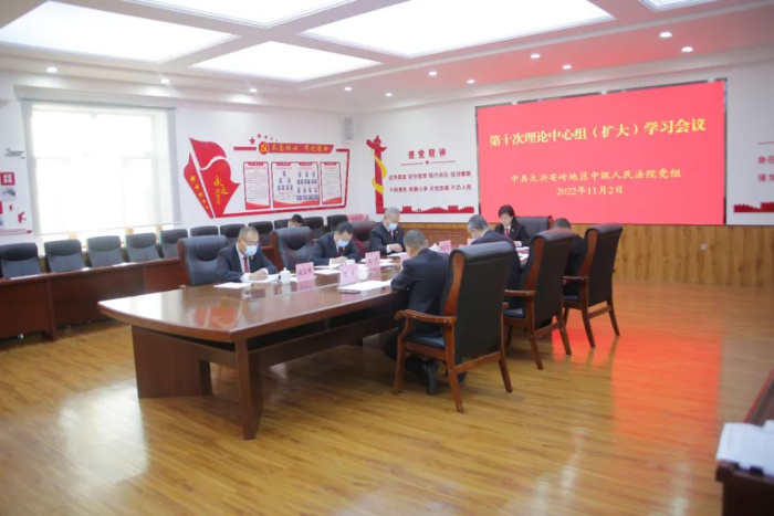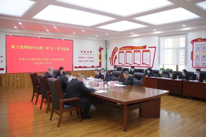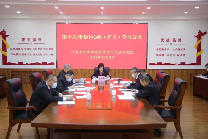 11月2日,大兴安岭地区中级人民法院党组理论学习中心组召开第10次(扩大)学习会议,深入学习习近平强军思想、习近平总书记在瞻仰延安革命纪念地时重要讲话精神、中共中央关于认真学习宣传贯彻党的二十大精神的决定、深刻理解把握“五个必由之路”的重大意义等内容。中院党组书记、院长于世伟主持会议,中院党组成员、院领导,各相关部门负责人参加会议。