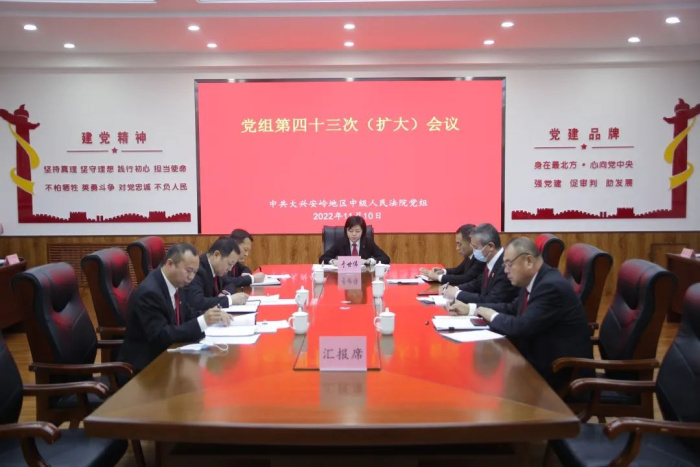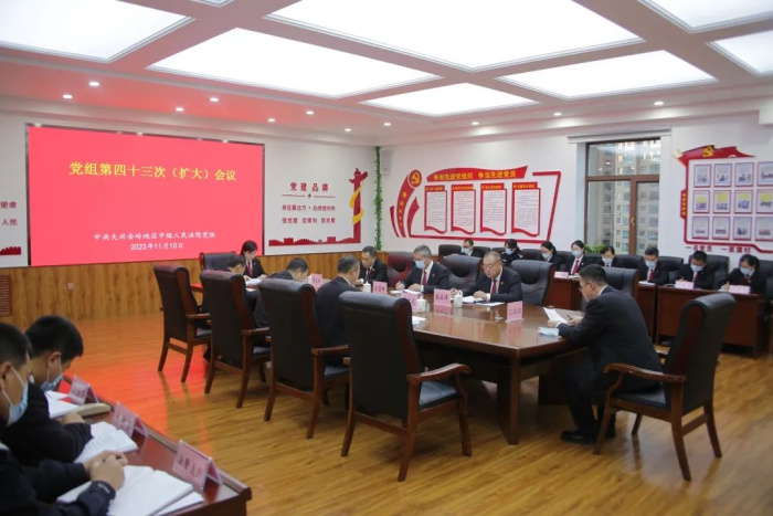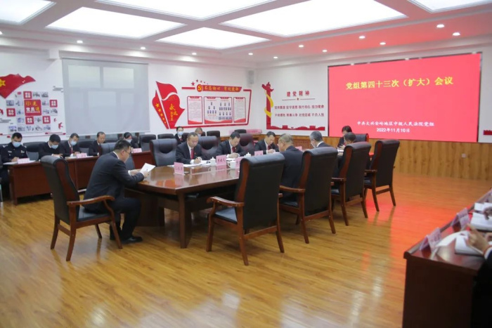 11月10日,大兴安岭地区中级人民法院党组召开第四十三次(扩大)会议,对学习宣传贯彻党的二十大精神进行再安排再部署。中院党组书记、院长于世伟主持会议。中院院领导,地纪委监委派驻纪检监察组组长孟宪臣,各内设机构部门负责人参加会议。