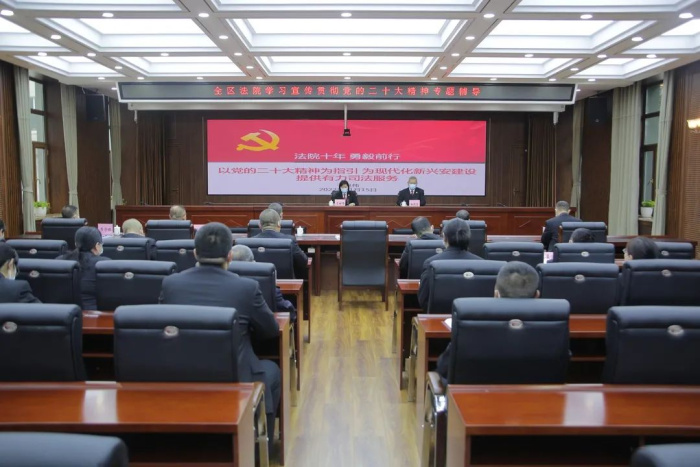 11月15日,大兴安岭地区中级人民法院组织开展“全区法院学习宣传贯彻党的二十大精神专题辅导”,中院党组书记、院长于世伟以“法院十年勇毅前行 以党的二十大精神为指引 为现代化新兴安建设提供有力司法服务”为题向全区法院干警作专题辅导。