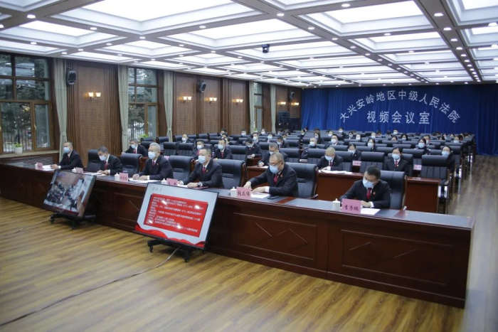 专题辅导以视频形式召开,中院党组成员、院领导、干警代表在主会场参加会议,各基层人民法院全体干警在分会场视频参会。