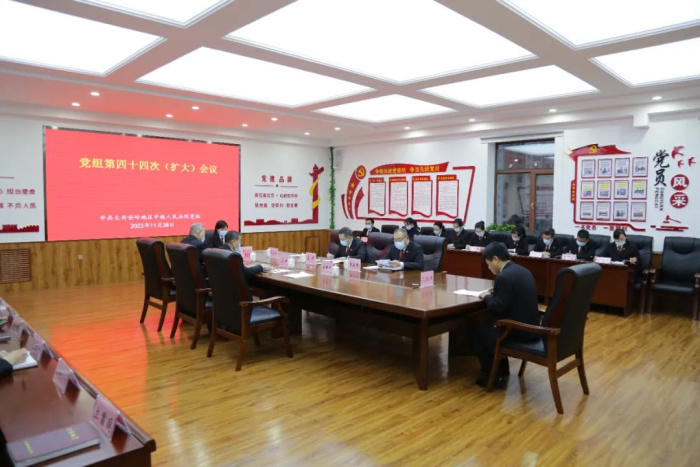 11月28日,大兴安岭地区中级人民法院召开第四十四次党组(扩大)会议,传达学习习近平总书记《论坚持全面依法治国》、贯彻落实陈文清同志在最高人民法院调研时的重要讲话精神,传达地防指相关疫情防控文件精神、部署中院机关疫情防控工作。中院党组书记、院长于世伟主持会议。中院院领导,各内设机构部门负责人参加会议。