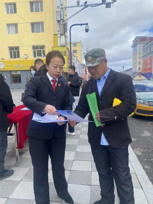 新林区人民法院联合区财政局、区司法局、区公安局在行政便民服务中心门前开展宣传活动。活动现场,向前来咨询的群众和沿街商户发放《保护中小投资者普法宣传》《民法典》和有关证券法、公司法、优化营商环境条例等方面的等宣传资料。以现场咨询和交流互动等方式,积极宣讲国家针对“保护中小投资者”实施的重要举措,教育引导群众要全面知权、积极行权、依法维权,做理性投资者。