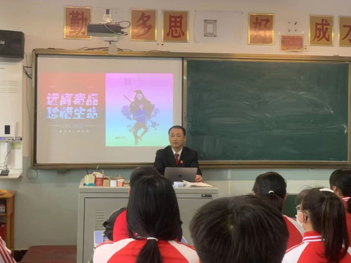 孙长东以“远离毒品,珍惜生命”为主题,分别从什么是毒品、毒品的危害、导致吸毒的原因、如何抵制毒品等几个方面进行授课。随后通过4起未成年人毒品犯罪典型案例的讲解,让同学们对毒品的危害有了更进一步的认识。
