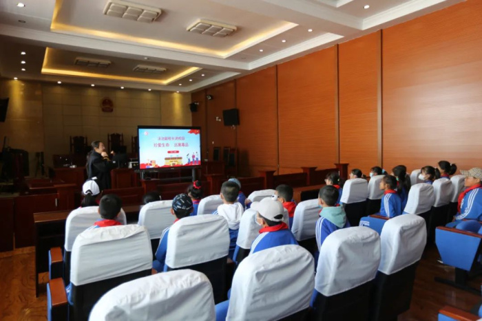 为进一步提升青少年学生识毒、防毒、拒毒的能力,全面落实未成年人两法及家庭教育促进法,推动创建安全文明校园,5月17日呼中区第一小学的法治副校长邀请学生到呼中区人民法院审判庭参加《珍爱生命,远离毒品》主题教育课程。