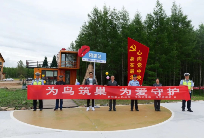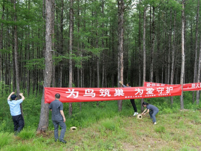 为不断提高人民群众法治观念及环保意识,营造人与自然和谐共生的良好社会氛围,进一步保护野生动物生物多样性,充分发挥环境资源审判职能作用,做好环境资源保护工作,6月30日,新林区人民法院联合区生态环境局、区自然资源局在新林区爱情小镇开展保护野生动物筑巢行动。