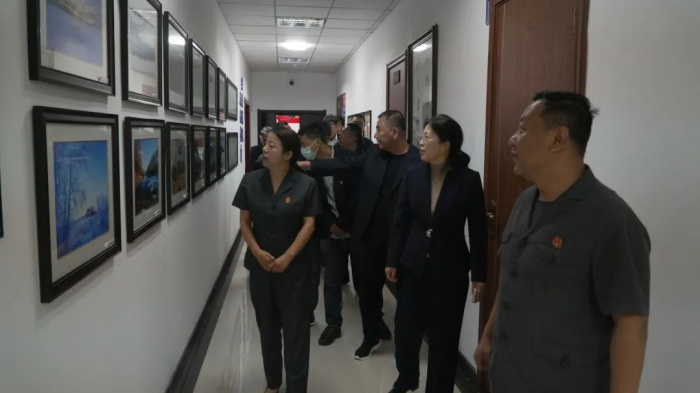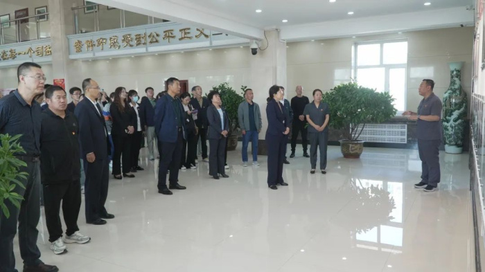 讲解员带领大家先后参观了员额法官墙、司法之光长廊、科技法庭、文化长廊、体能训练中心、院史馆和图书馆。