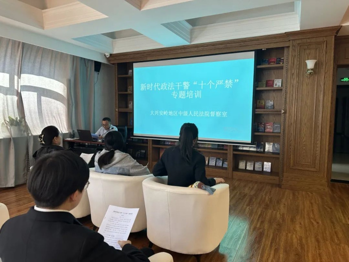 督察室侯丽超从十个严禁”的出台背景、制定依据、四大亮点等方面进行了授课。结合2023年我区法院典型案例,进行深入细致的讲解,会上观看了“十个严禁”内容宣传短片。