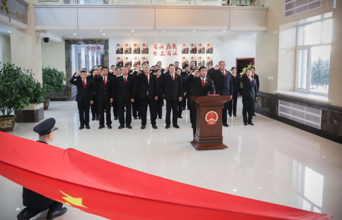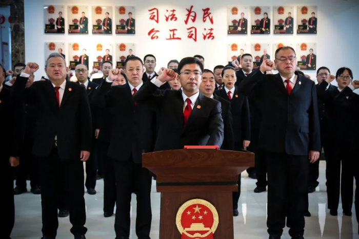 上午9时,大兴安岭中院院领导、部门负责人、新任员额法官面向中华人民共和国国旗,整装肃立,高举右拳,在领誓人领誓下庄严宣誓“忠于中华人民共和国宪法,维护宪法权威,履行法定职责,忠于祖国、忠于人民......”铮铮誓言铿锵有力,承诺掷地有声,充分体现大兴安岭中院干警们恪守宪法原则、履行宪法使命、捍卫宪法尊严的坚定决心。