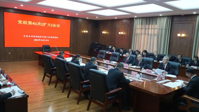 12月12日,大兴安岭地区中级人民法院召开2023年第41次党组(扩大)会议。中院党组书记、院长人选杨瑞明主持会议,中院党组成员,各部门负责人参加会议。会议学习贯彻习近平总书记近期重要讲话重要指示和重要文章精神,传达地委近期相关工作会议精神,传达全省法院行政审判工作视频调度会议精神,听取巡察整改工作和环资审判工作情况汇报,研究部署相关工作。