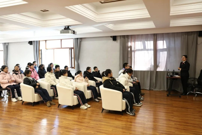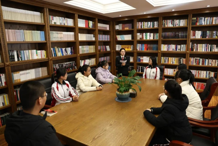 “同学们,谁能告诉我,十四周岁需要负什么法律责任?”当少年法庭负责人、四级高级法官杨洋提出问题后,同学们踊跃的举手回答。杨洋首先结合校园生活中的真实案例,深入浅出地讲解了反校园霸凌的相关法律法规,提醒同学们学会保护自己,也明确自身行为的边界。之后带领大家走进庄严的法庭,讲解法庭设施,讲解法槌、法徽的意义,以法律知识问答的形式,让学生们巩固了解法律知识,提高他们的法律意识和法治观念。同时,也鼓励他们将所学到的法律知识运用到日常生活中,做守法、懂法、用法的好少年。