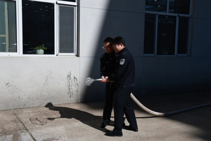 在现场演示阶段,干警们进行了干粉灭火器和消防水带实际操作。本次活动增强了干警安全消防意识和逃生技能,使干警远离火灾,练就自救本领,在发生火警火灾时,能临危不乱,有序、迅速地按照消防逃生路线安全疏散,确保生命安全,筑牢安全意识。