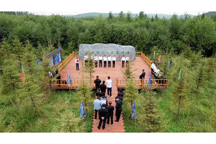 8月10日,在第二个全国生态日即将到来之际,黑龙江省大兴安岭地区中级人民法院、大兴安岭林业集团融合共建的“林业碳汇+生态司法”生态修复基地在漠河林业局前哨林场落成。该基地依托前哨林场集生态修复、成果展示、普法宣传、警示教育等功能于一体,是践行环资审判修复性理念的具体体现,是探索异地复绿补植的有益实践,是综合运用自然恢复和人工修复两种方式的有效手段。