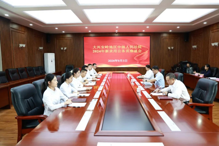 9月3日,大兴安岭地区中级人民法院召开2024年新招录公务员座谈会。党组书记、院长杨瑞明,党组成员、政治部主任李晓颖及相关部门负责人,全体新入职干警参加了座谈会。党组副书记、副院长庄严主持会议。