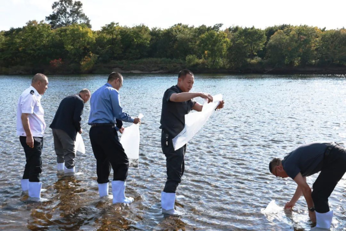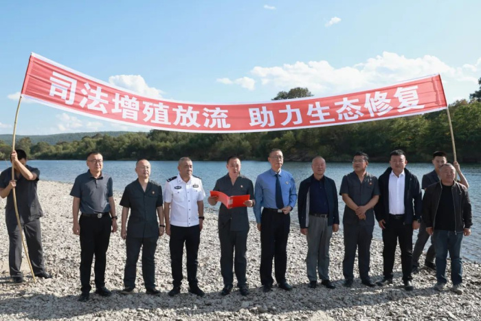 近日,大兴安岭地区中级人民法院与加格达奇区人民法院联合检察机关、公安机关,畜牧水产服务等相关单位在甘河加格达奇段开展增殖放流活动。