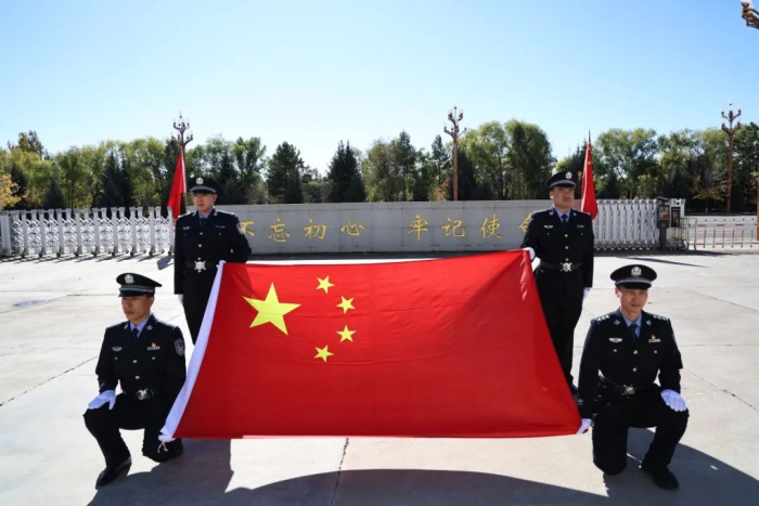 全体党员干警与国旗合影,为祖国75岁华诞献上诚挚祝福,共同祝愿伟大祖国繁荣昌盛、国泰民安,用最庄重朴素的方式表达对祖国母亲的热爱和对祖国未来繁荣昌盛的期盼与祝福。