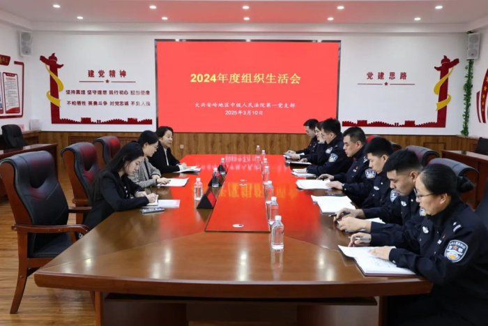 3月10日,大兴安岭地区中级人民法院第一党支部召开2024年度组织生活会。地直机关工委副书记牛丹丹,中院党组成员、政治部主任李晓颖到会指导。