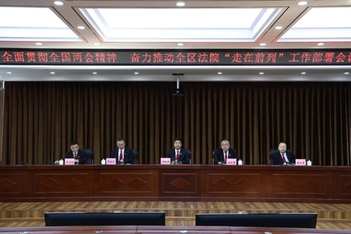 会议强调,全区法院要深入学习贯彻习近平总书记在全国两会期间的系列重要讲话和全国两会精神,全面落实省委、地委能力作风建设工作部署以及全省法院“走在前列”工作部署,以“闯”的精神、“创”的劲头、“干”的作风,立足区域优势和审判职能,坚持“自己和自己比、今年和去年比”,以自我超越实现晋位争先“走在前列”,以实际行动践行“身在最北方·心向党中央”的政治忠诚,推动全区法院工作高质量发展,为龙江全面振兴全方位振兴贡献兴安法院力量。