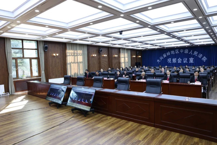 会议以视频形式召开,中院党组成员、院领导,中院全体干警在主会场参会;各基层法院院长、院领导,各庭室负责人在分会场参会。