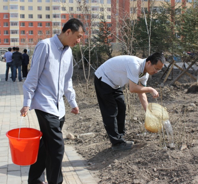 大兴安岭地区中级人民法院全体干警在中院领导的带领下,在西岭棚户区和兴大街,给黄槐、丁香等苗木5万余株植树供水。参加劳动的干警根据技术指导的要求圆满完成任务,为营造生态、文明、和谐的人文环境出一份力。